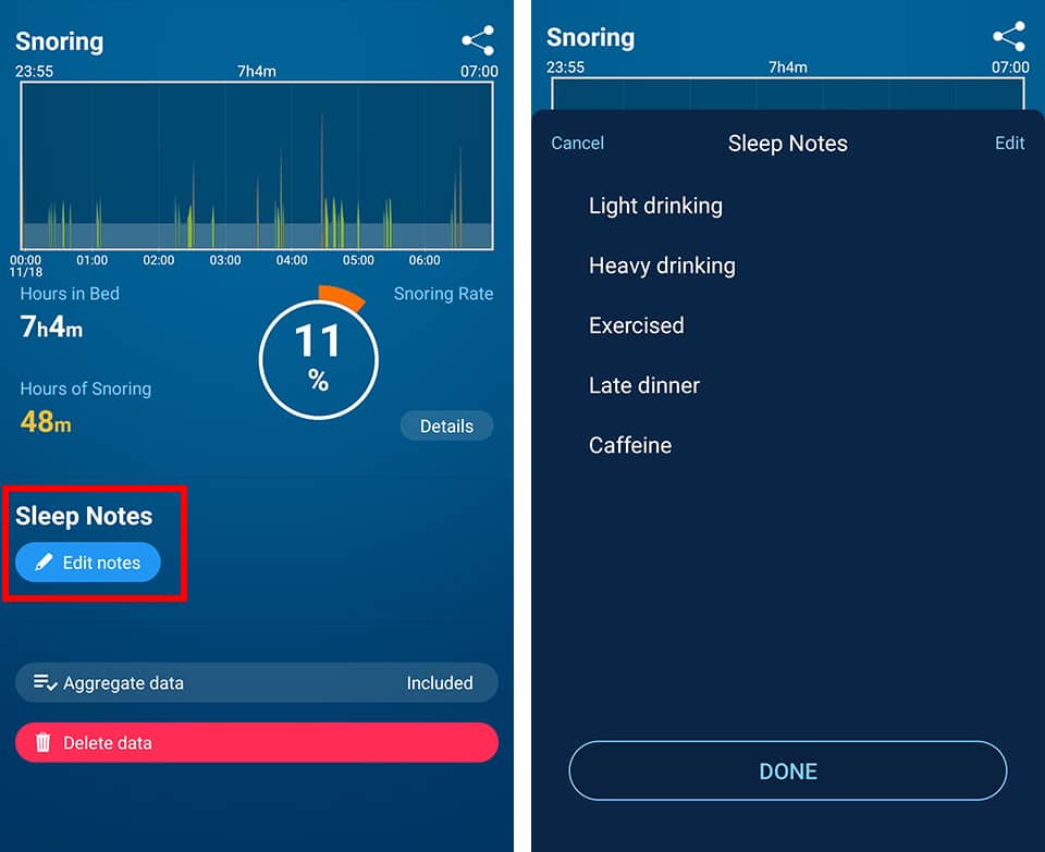 Sleep Notes help you connect your daily habits with your sleep data, making it easier to discover patterns unique to you.