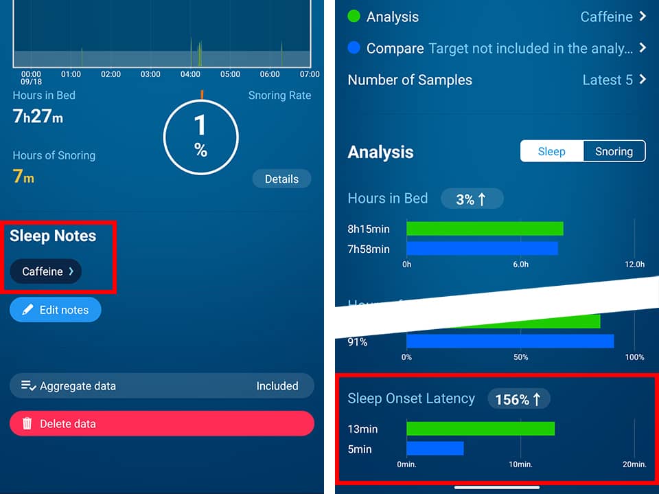 - Review your sleep data on days when you had caffeine and days when you didn’t.