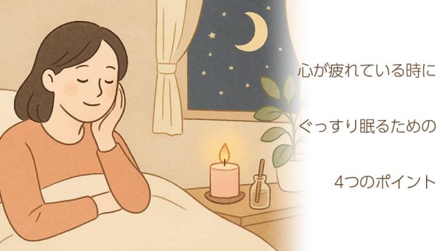 心が疲れている夜こそ、自分を責めず、やさしく包み込むような時間を過ごしましょう。眠りは「頑張った心を癒やすごほうび」です。明日のあなたが少しでも軽くなれるように、今夜は自分をいたわる眠りを大切にしてみてくださいね。